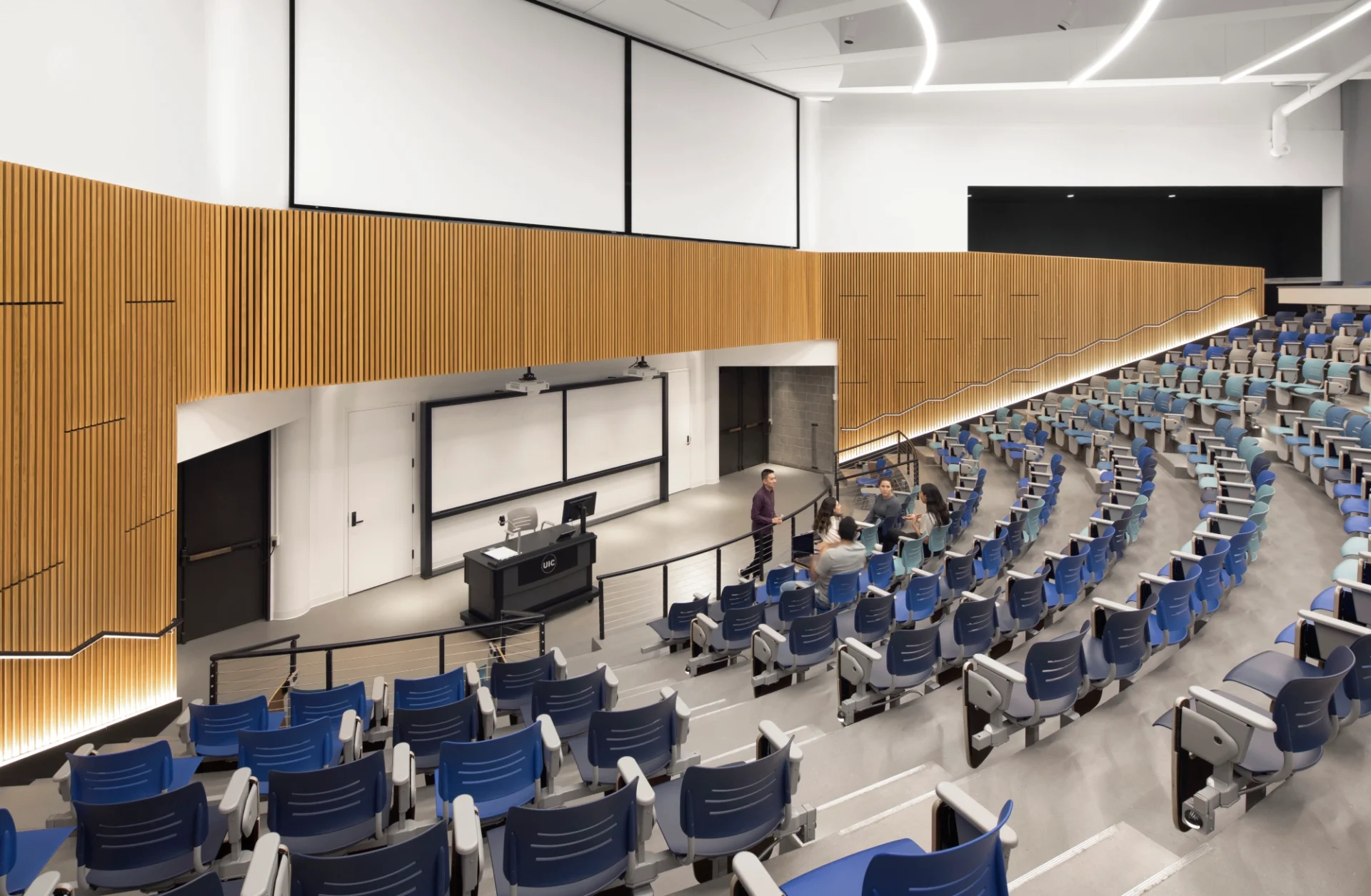 Cushioned seats (wherever possible) and ergonomic backrests help students concentrate on studying instead of focusing on how uncomfortable they are while attending the lecture. Durable armrests and fold-away tables and chairs help staff rearrange lecture hall or auditorium settings as required.