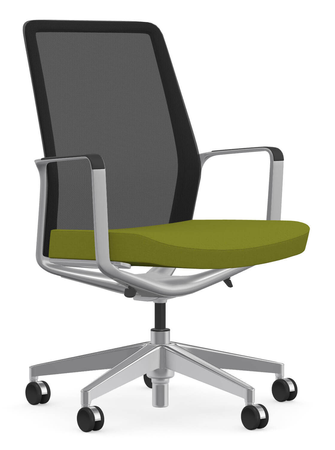 Enjoy all-day support easily. Whether you choose an upholstered back or a mesh back (offered in 18 colors), Mila’s graceful aluminum accents pair perfectly.