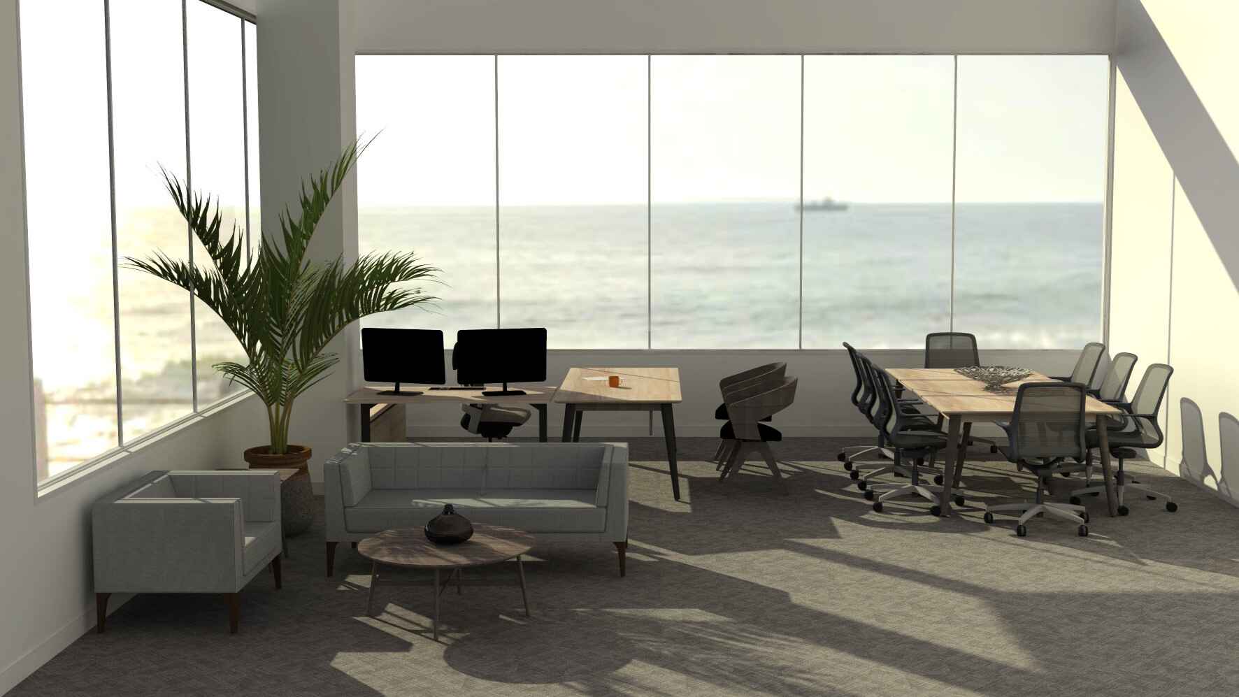 – Low panels low allows the team to enjoy the natural daylight and incredible views! Tripod shape adds interest to the space