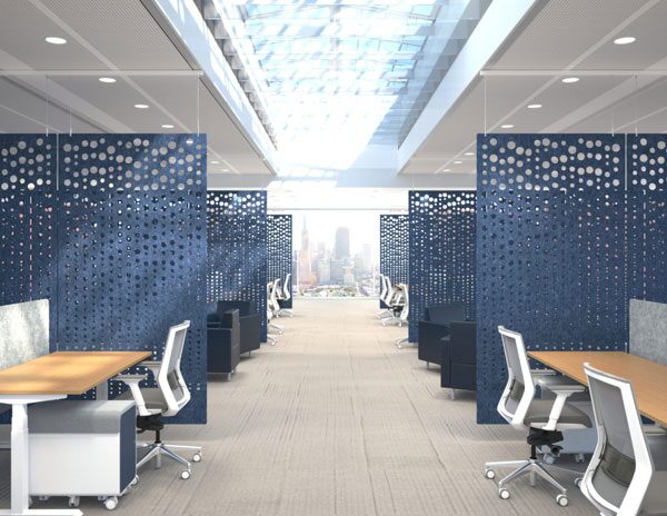 Solid partitions, often made of wood or metal, are perfect for creating closed-off spaces within an office. Do employees need to hash out sensitive details without an audience? Set up shop behind one of these screen walls and breathe easy. Partitions are like mental cliffs: they keep distractions from creeping in and splintering concentration.